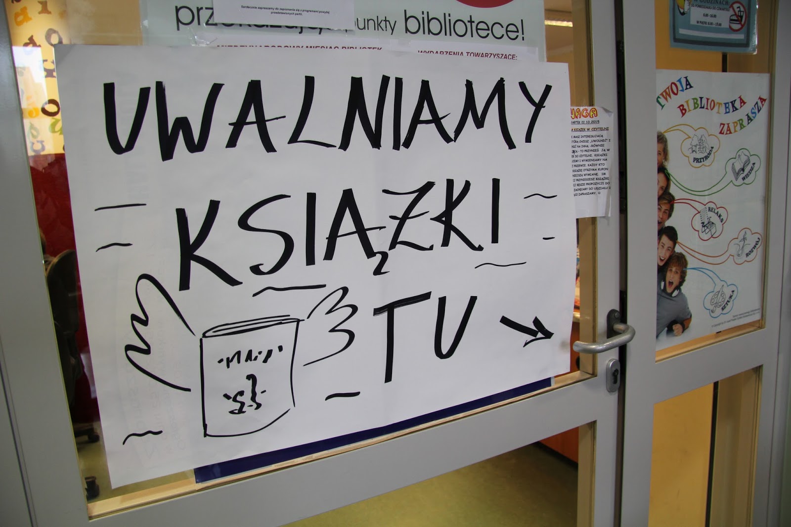 W czwartek w naszej bibliotece po raz pierwszy odbyła się akcja uwalniania książek. Uczniowie mogli przynieść dowolną ilość książek i je wymienić na inne równie ciekawe. Każda książka otrzymała naklejkę a uczeń kupon do wymiany. Ze względu na duże zainteresowanie akcję przedłużono. W sumie uwolniono 55 książek