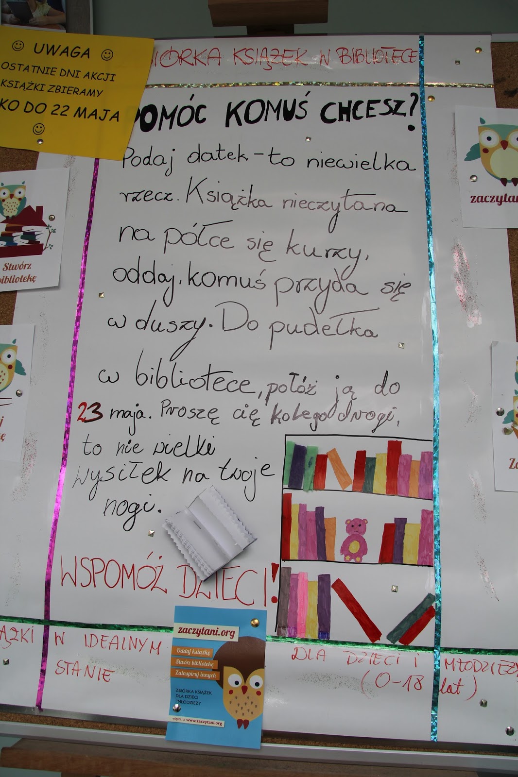 W dniach 23.04 -22.05 2016 roku nasza szkoła wzięła udział w akcji organizacji "Zaczytani" :